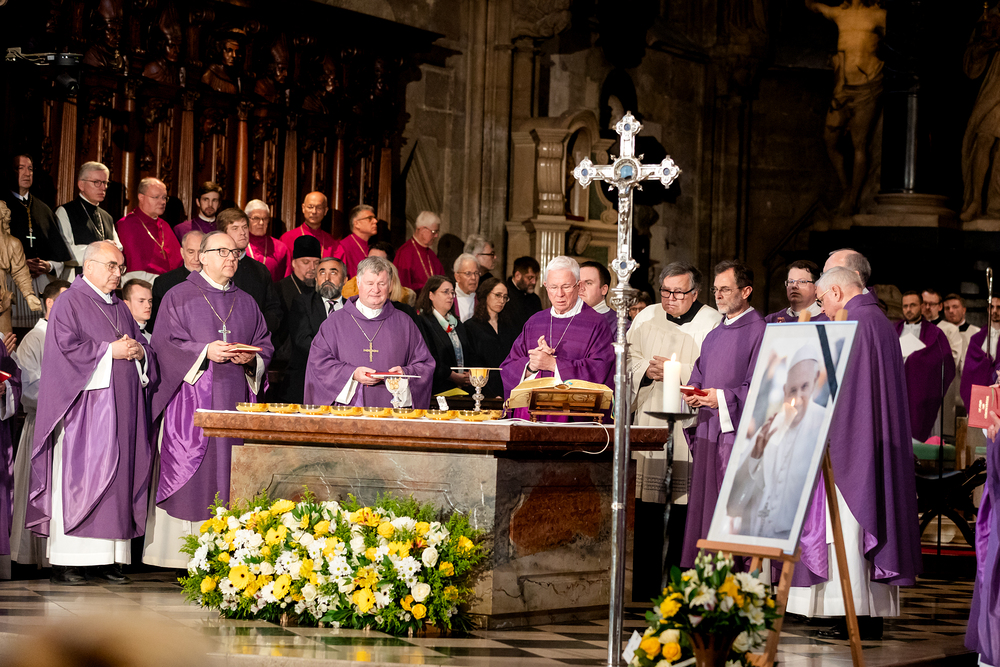 Mit einem "Requiem für seine Heiligkeit Papst Franziskus" nahm Österreich am Montagabend offiziell Abschied vom Papst. Dem Gottesdienst stand der Vorsitzende der Österreichischen Bischofskonferenz, Erzbischof Franz Lackner vor. Mit ihm konzelebrierten die heimischen Bischöfe. Die Politik war an erster Stelle von Bundespräsident Alexander Van der Bellen und Bundeskanzler Christian Stocker vertreten. Zahlreiche Gläubige gaben dem Papst im vollen Dom ebenfalls die letzte Ehre